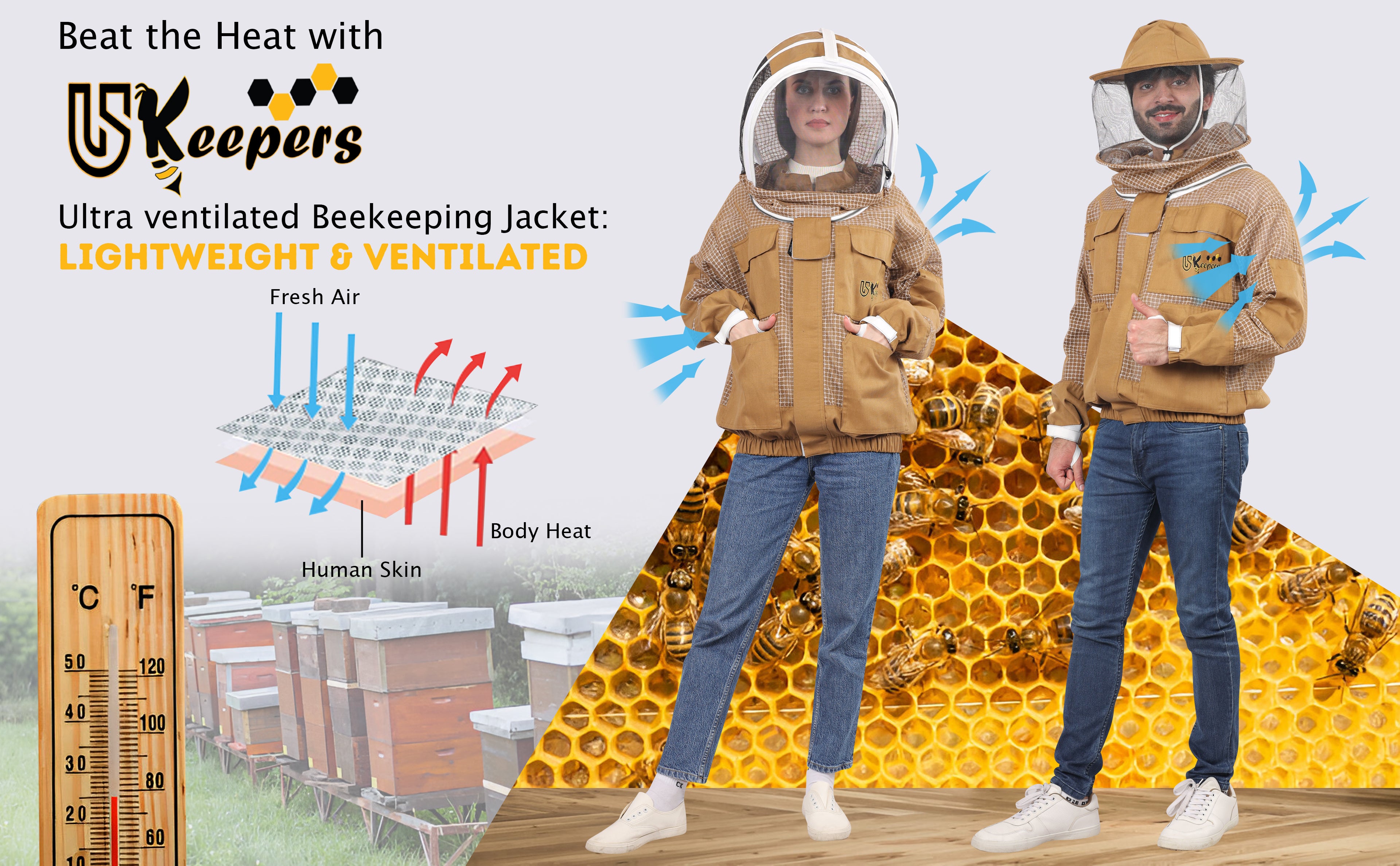 USKEEPERS beekeeping three-layer Bee Jackets are crafted with a breathable polyester mesh outer and inner layer, plus a lightweight EVA foam mesh core for ultimate protection. The innovative design ensures an air gap to prevent stings while keeping you cool and comfortable. Durable and lightweight, USKEEPERS Beekeeping Jackets are perfect for beekeepers in all climates.