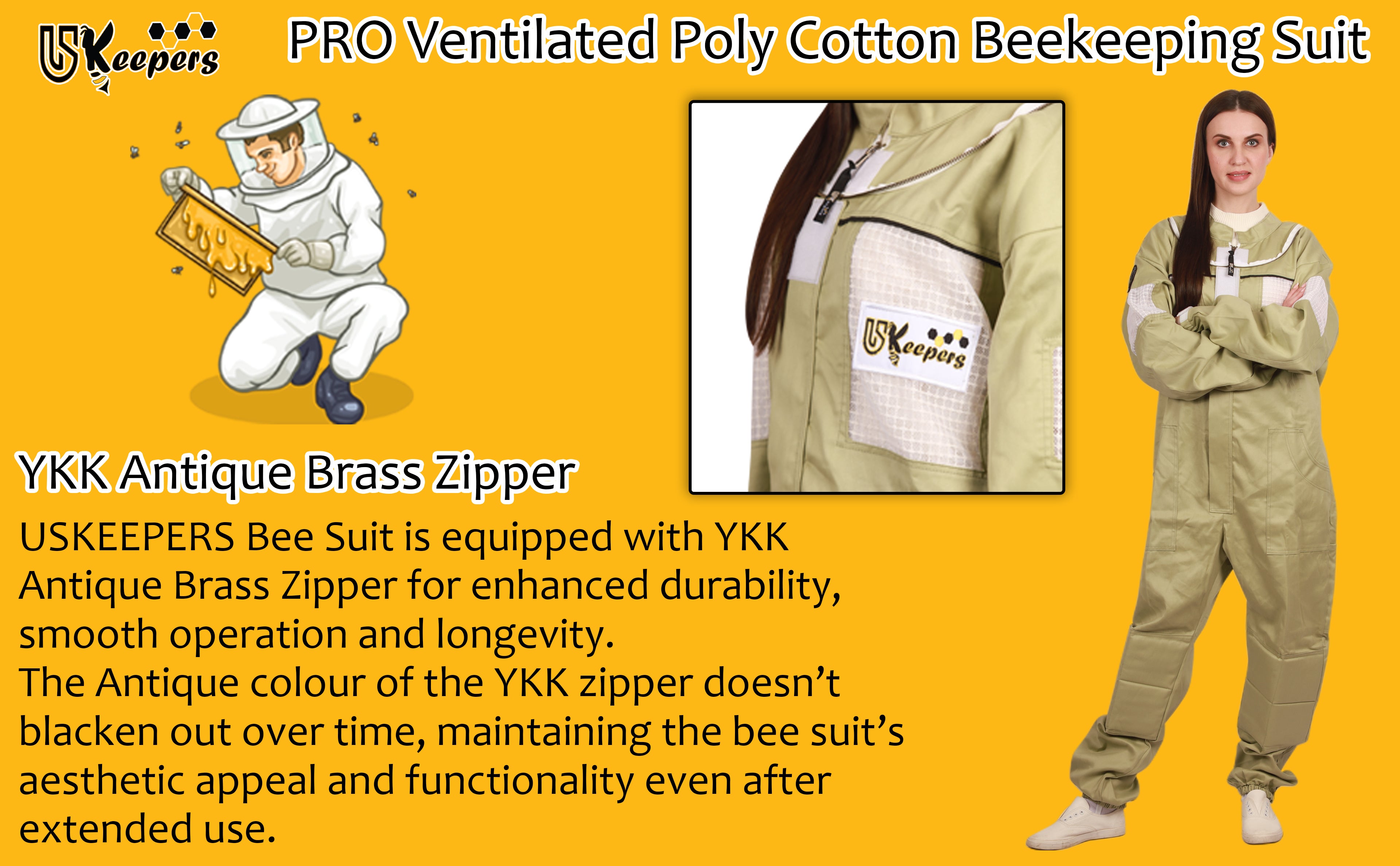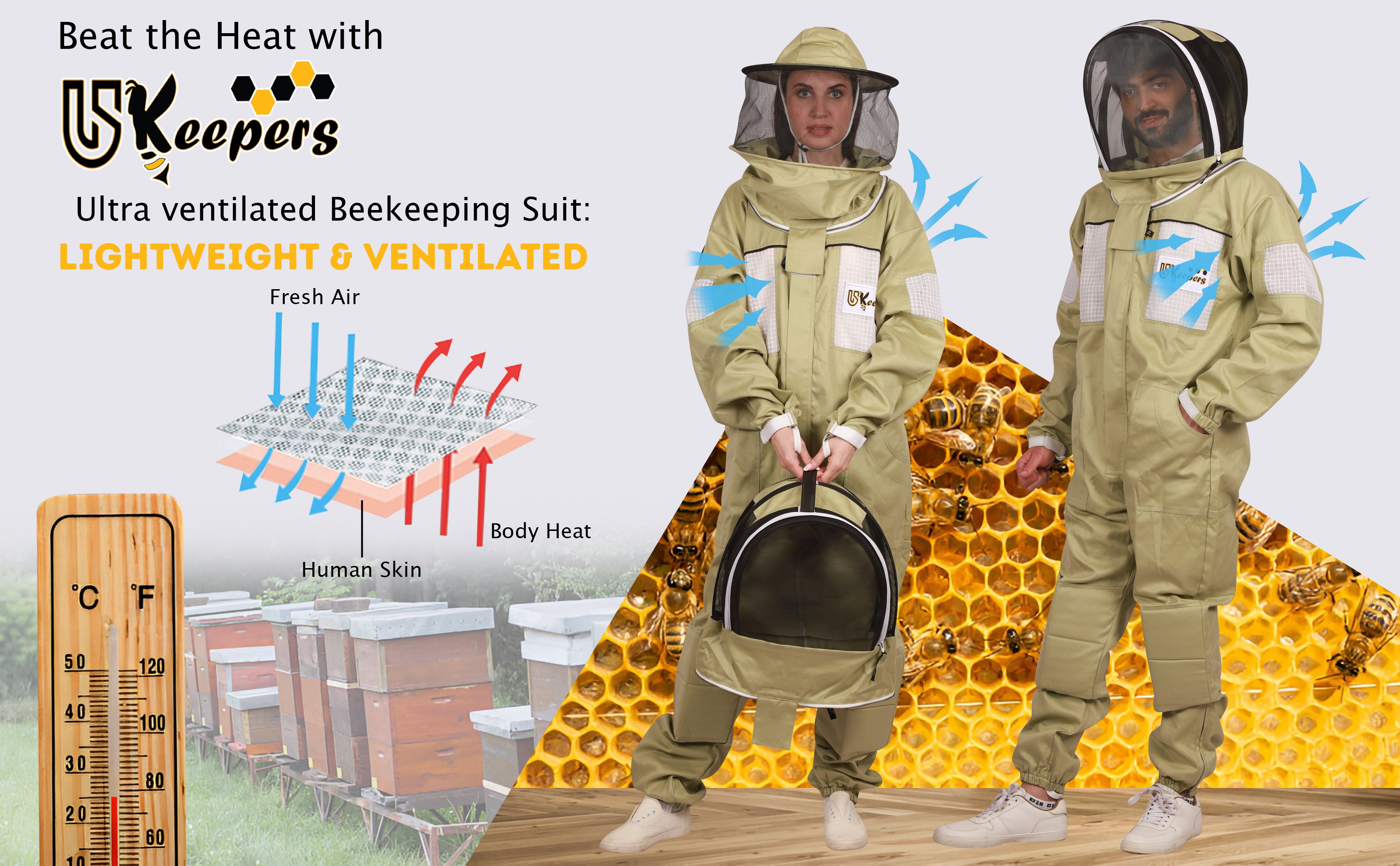 USKEEPERS Semi-Ventilated Polycotton Bee Suits are crafted with durable polycotton fabric and feature three-layer ventilation panels for enhanced breathability. This innovative design promotes airflow to keep you cool and comfortable while providing reliable sting protection. Lightweight yet robust, USKEEPERS Polycotton Beekeeping Suits are ideal for beekeepers in all climates.