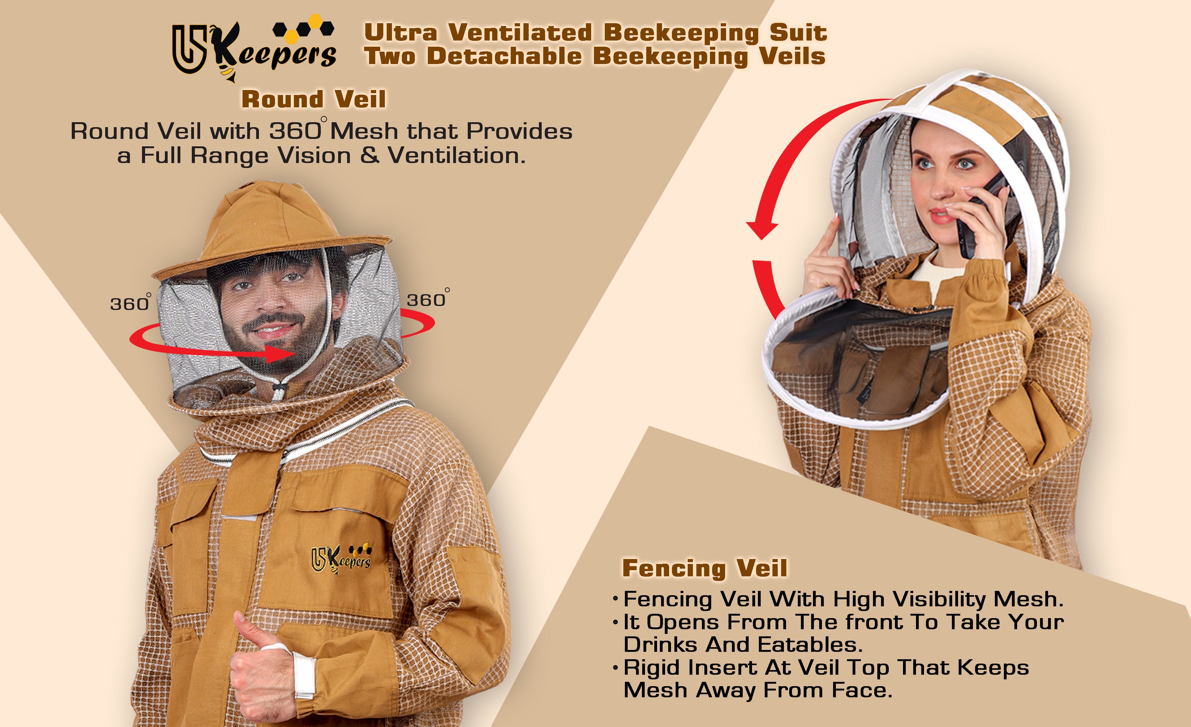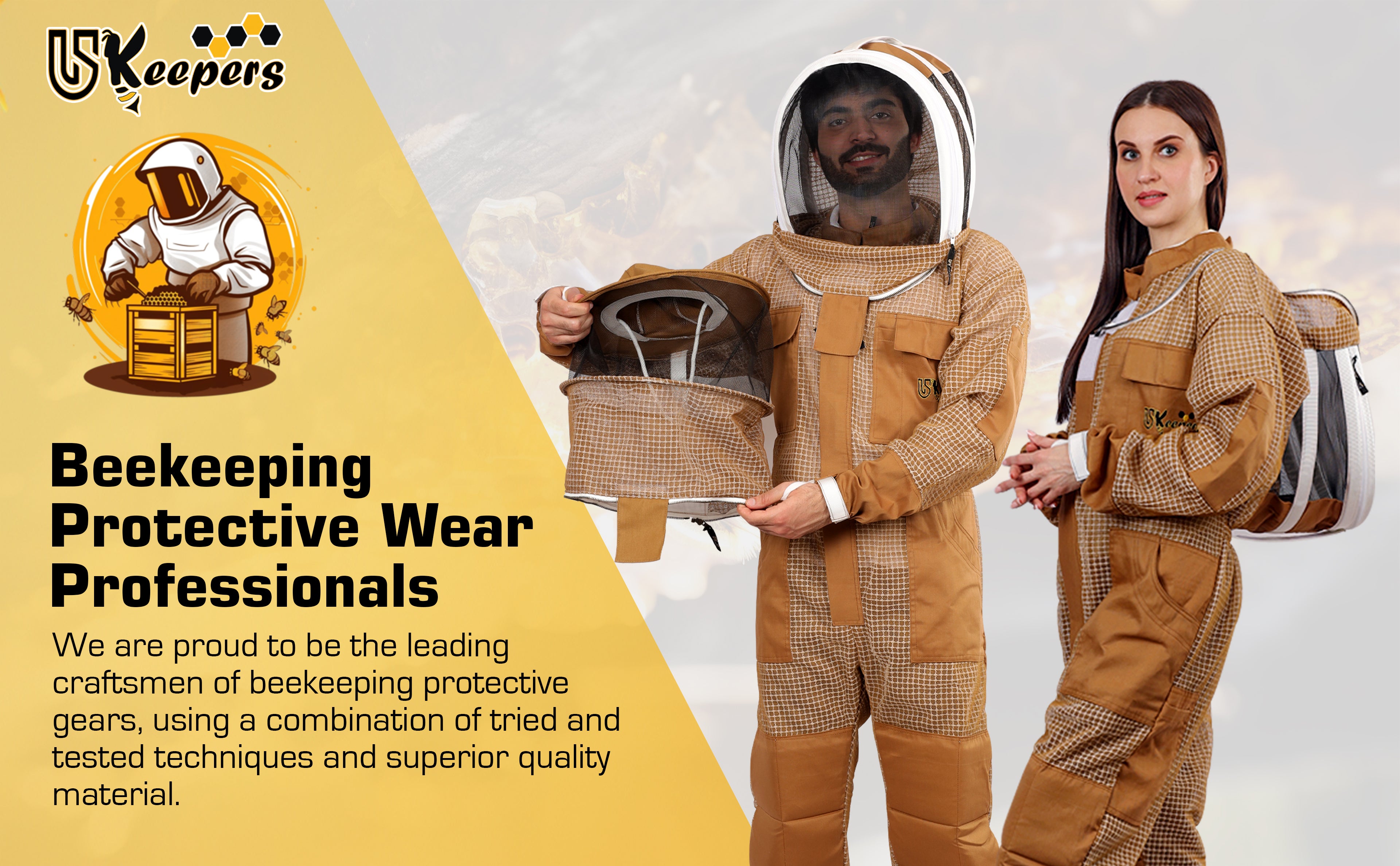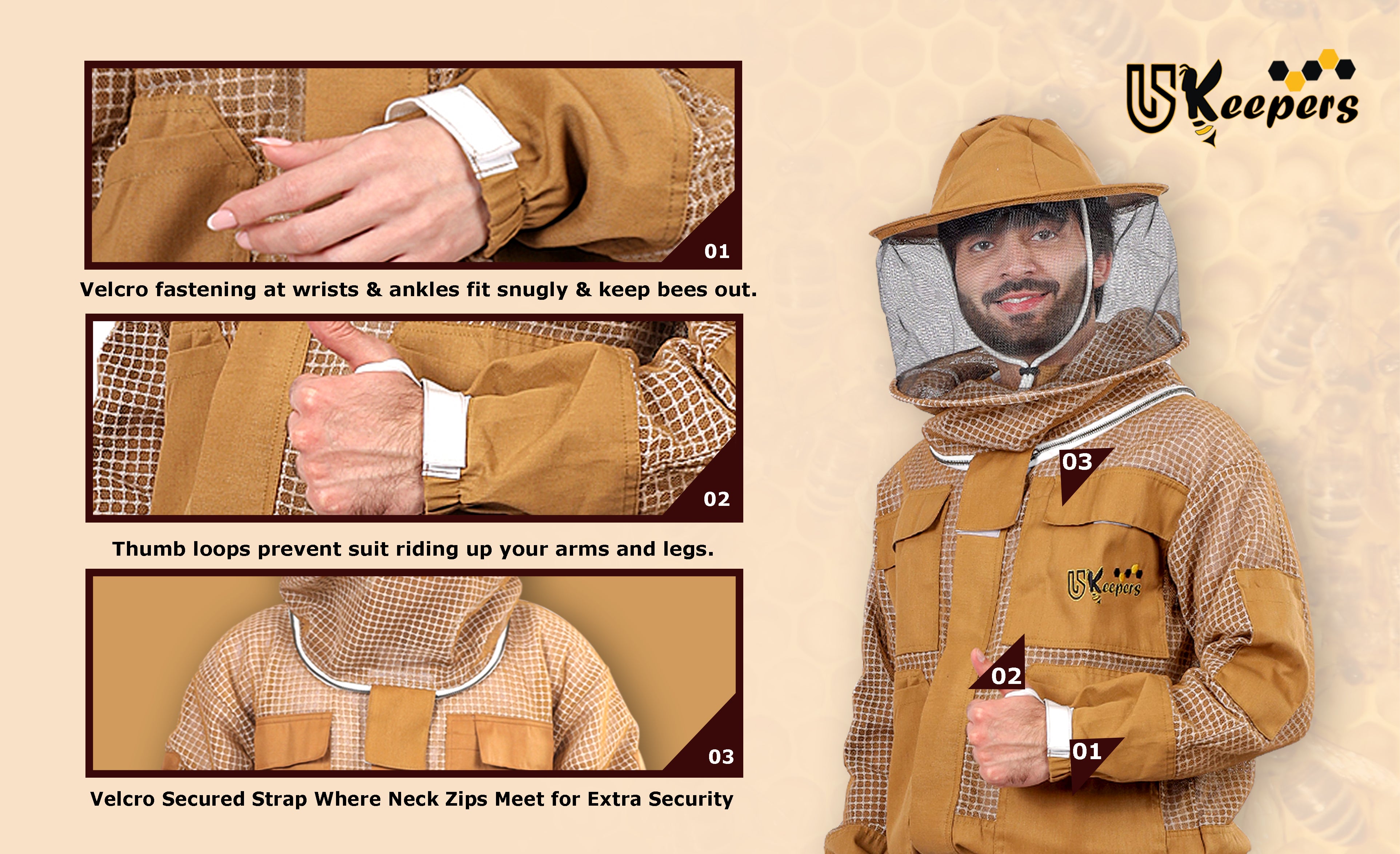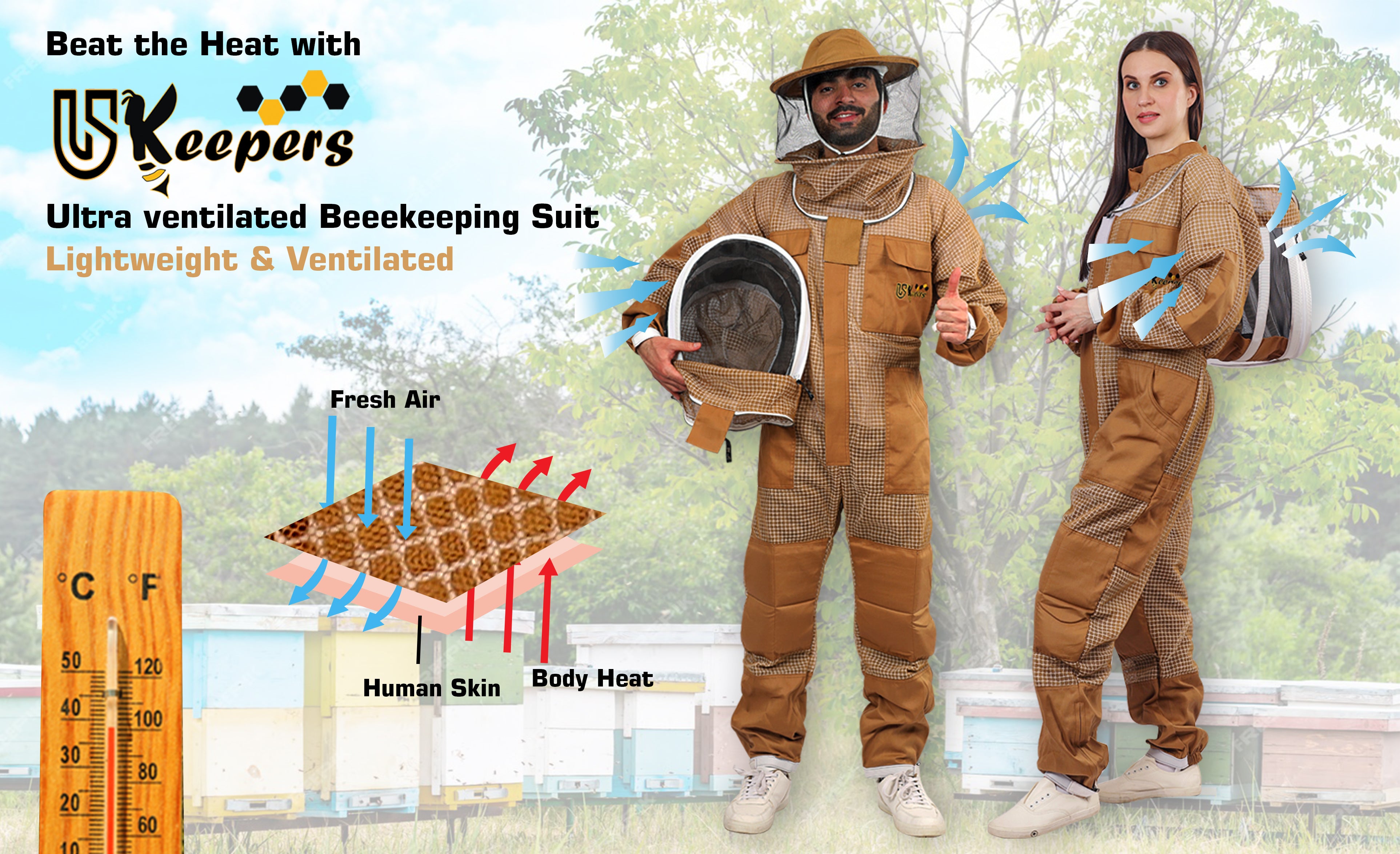 USKEEPERS beekeeping three-layer Bee Suits are crafted with a breathable polyester mesh outer and inner layer, plus a lightweight foam core for ultimate protection. The innovative design ensures an air gap to prevent stings while keeping you cool and comfortable. Durable and lightweight, USKEEPERS Beekeeping suits are perfect for beekeepers in all climates.